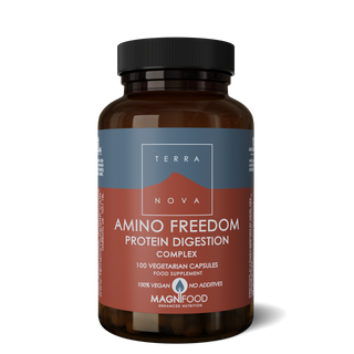Amino Freedom Protein Digestion Complex with MAGNIFOOD blend including Papaya, Ginger, Gentian and Artichoke. MAGNIFOOD The holistic innovation developed by Terranova utilises whole, unadulterated, phyto-rich foods and botanicals, many of which are fresh freeze-dried.